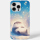 A content otter lies peacefully on the ground beneath a night sky filled with glowing stars and a crescent moon. Soft, dreamy colors of blue and green, combined with the twinkling lights, create a serene and magical atmosphere.