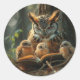 Cute design of an owl with glasses reading a book in the forest to little chicks