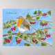 A print of my drawing in ink of a robin on a hawthorn bush with text which you can change or delete. The text says An Spideog beag in Irish meaning the little robin.
