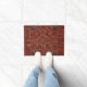 Anatolian rug look doormat - geometric tribal pattern in warm colors . It will surely add a touch of elegance and coziness to any space .Traditional rug design with latch -hooks and diamond shape in the center field . It is typical in the area of Bergama , Turkey .