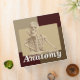For the anatomy student or teacher. Happy, thoughtful looking skeleton with his head resting in the palm of his hand. Beiges and browns in rectangles decorate the front and spine of the binder. The word "anatomy" in white on front and spine are customizable so either change or delete them as you wish. Taking an anatomy course? Great binder for you. Or, delete the text and just have a fun binder with a skeleton.