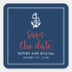 Stylish Nautical Save the Date sticker featuring an anchor and the words "save the date" in a stylish red script against a blue background with a white border. Use it to seal your envelopes. Check out other wedding items here https://www.zazzle.com/rosewoodandcitrus/gifts?cg=196540141241316965&rf=238364477188679314