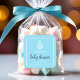 Stylish Nautical Baby Shower sticker featuring an anchor and the words "baby shower" in a stylish navy blue script against a blue background with a white border that is perfect for a boy baby shower. Use it to seal your envelopes. Check out other baby shower items here https://www.zazzle.com/rosewoodandcitrus/gifts?cg=196748758771183969&rf=238364477188679314