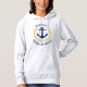 A custom designed nautical boat anchor, gold style laurel leaves and a gold star with Captain rank or other title and your personalized name or boat name on a woman's pull-over hoodie sweatshirt. Several colors to chose from. Makes a great gift.