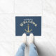 A simple nautical design in deep navy blue featuring an anchor, with the word "Welcome" above it. This charming combination invites your visitors while capturing the maritime essence of your space.