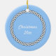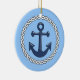 Nautically themed creramic hanging holiday ornament has an encircled anchor on the front, and aplace for y ou to entr the year on the back.