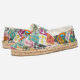These shoes are amazing, well constructed, vivid color durable fabrics, can wear comfortably without socks…and pick your liner color. I ordered several and wore all Summer into Fall. A GREAT choice and hundreds of fabrics to choose from! Thanks so much to the designers…a real winner!! Order one size up to wear with socks. Usual size is snug at first but does stretch after several earrings. .