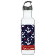 A cute and preppy nautical themed pattern bpa free aluminum with anchors, hearts and bubble in a navy blue, red and white. It can be personalized with your name on the red ribbon design. Stay hydrated with this custom Liberty brand made in the USA water bottle. Designed by Chrissy H. Studios, LLC. All Rights Reserved.