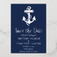 Anchor Nautical Navy Blue Modern QR Code Wedding Foil Invitation