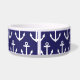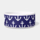 Popular anchor design in navy blue and white comes on a custom name pet bowl for your dog or cat.