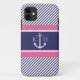 Anchor & Nautical Stripes & Monogram Navy &Pink Case-Mate iPhone Case