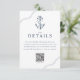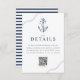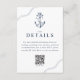 Introduce your guests to the details of your seaside celebration with our elegant nautical-theme wedding details enclosure card. This minimal yet refined design features hand-drawn rope elements that gracefully frame the corners of the card, complemented by a nautical anchor crest design. Personalize it with the couple's monogram to add a unique, personal touch to your wedding stationery. This enclosure card provides space for all your important wedding details, and for added convenience, it includes an optional QR code. Guests can scan the code to easily access all your wedding information on their phones. The reverse side showcases a timeless navy blue and white stripe pattern, bringing classic nautical charm to your design. Perfect for couples planning a nautical or beach-themed wedding, this elegant enclosure card is the ideal way to share your celebration’s details in style. Design and hand-drawn artwork by © Moodthology Papery.