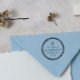 Nautical return address rubber stamp with a round rope border and a little anchor. Add your name in an elegant script and your address in a serif font.