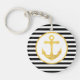 Custom double-sided round keychain with black stripes and gold anchor nautical theme.