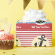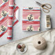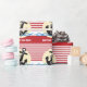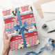 This gift wrapping paper features a graphic of an anchor with a rope, a yellow and white striped sun and several lines of blue water waves all on a red and white striped background. Customizable text allows you to add your own personal message.
