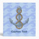 Anchor with rope illustration over waves light blue seamless background. Custom text.