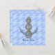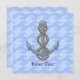 Anchor with rope illustration over waves light blue seamless background. Custom text.