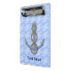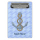 Anchor with rope illustration over waves light blue seamless background. Custom text.