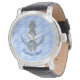 Anchor with rope illustration over waves light blue seamless background. Custom text.