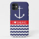 Anchor with Waves and Custom Name in Navy & Red Case-Mate iPhone Case
