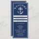 Nautical blue and white wedding program. Great for a Navy (military) or lake house wedding. Design features an anchor wrapped in a banner with text "Anchored in love". Personalize it with your wedding details.