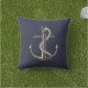 Give your home a nautical touch with this navy blue cotton throw pillow featuring a white rope wrapping around a realistic looking anchor.