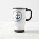 Personalize this nautical themed Anchors Aweigh cup with an optional line of text at top center (erase if not needed) and name at bottom center.