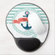Fun nautical theme features blue and white Anchors with rope circle and banner on Aqua background. Coral banner accents and dark blue rickrack trim. Customize the banner text or delete