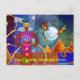 It's a third encounter of the brightly colored, mysterious, and whimsical kind with these winged ancient alien astronaut angels ascending toward the heavens. The extraterrestrials take spiral flights about the mythical pyramids spreading fantastic vibrant spiritual symbols about the landscape. Original artwork by graphic artist Ken Elmer.