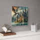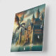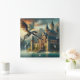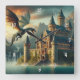 Ancient Castle Under Attack from a Flying Dragon Square Wall Clock