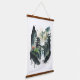 A beautiful wall hanging tapestry showing an ink illustration of a landscape with ancient Chinese architecture and majestic waterfalls.