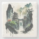 Ancient Chinese Ink Landscape with Waterfall Stone Coaster
