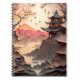 A beautiful brown xxx spiral photo notebook a paper cutout scene depicting ancient Chinese building, trees, mountains and lake.