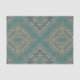 Unique tissue paper design featuring a distressed-looking damask pattern in shades of teal and beige.