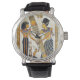 This watch looks great - when new, and keeps great time. The only problem is that the chrome plating on the metal did not last. I wore the watch for ten days and the copper-colored base metal was showing - very unsightly and disappointing. Good image and printing.