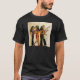 My 11 yo wore adult XL (5’7” 165#). The 8yo is small framed. She wore adult small and tied it in the back. Grandma wore adult large with long sleeve shirt underneath. Tall girl adult medium. Dark haired male adult large. Good quality dark Heather gray, Gildan brand shirt. -it was next up from basic choice and cost about $20 per shirt. Not too thick or thin. Washed and dried well, no major shrinkage. Not see-through. Can wear a bra under it fine. Screen print is just as shown and well done, front and back.
