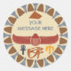 This round sticker is ready to be personalized with a your own custom message. It accompanies a collage of graphics inspired by ancient Egypt. My illustrations depict an Egyptian pyramid, a winged scarab beetle, a sign of life motif, a wedget eye motif and a falcon motif all set against a sand colored background and surrounded by a lotus shape frame.