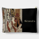 Dramatic design with ancient Egyptian hieroglyphics. Depicts a pharaoh or goddess.