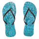 A pair of blue flip flops with ancient hieroglyphs engraved on stone. Feel free to customize the strap color!
