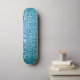 A blue skateboard with ancient hieroglyphs engraved on stone. Super cool.