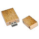 A yellow Maple USB Flash Wood Drive with ancient hieroglyphs engraved on stone.