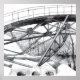 Pencil drawing.Artist by Zolotareva. Black White Monochrome Modern trendy pencilart. There's a beautiful bridge over the pond.