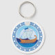 Greece keychain with a design of an ancient Greek ship. This design features an Ancient Greece ship and the Greek key lines pattern in a circle design with the sea and sky. This keychain is the ideal gift, souvenir or to use while you are on a trip to Greece.