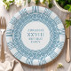 Elegant party plates for Greek or Roman Toga themed party featuring minimalist Greek meander pattern in blue. Customizable product for a memorable celebration. Perfect for your Ancient Greece or Ancient Rome-themed weddings, engagements, graduation parties, anniversaries, save the dates, bachelorette and birthday parties.