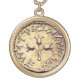 The writing is in ancient Hebrew letters. It means: "(of) holy Jerusalem". This is a picture of one side of the "half-shekel" silver coin from Bar-Kokhba Revolt, the year was 68. In ancient times, the half-shekel coin was used in order to count people, because of an old custom in the Jewish culture according to which counting people is brings bad luck. That way, each half-a-shekel coin represented a person in both regular population counts, and for holding massive religious practices. The number 3 is an important one in Jewish history: culture and religion. That is why there are three pomegranates in the picture, and the of crown in each is made out of three leaves. In the jewish culture, the pomegranate symbolizes beauty, good deeds, wisdom, profusion and blessing.