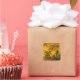 These fine art stickers feature an impression of an ancient oriental landscape. Two small figures are walking through trees toward a pagoda in the foreground. Mountains loom in the distance. The autumn colors are gold, yellow, orange, green, brown and black.