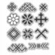 Ancient Latvian symbols Ozolins - Oak, Jumis, Motif from Lielvarde Belt, and Eight Point Star - Auseklis, Sun - Saulite, Laima often found in traditional Latvian folk attire, like belts embroidered accents and fabric