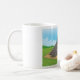 Start your morning with a view of the ancient world with this Mayan temple coffee mug. This ceramic cup features a wrap-around style illustration of a historic Mexican pyramid under a bright blue sky. It is a perfect addition to any kitchen or office for those who enjoy archaeology, anthropology, or dreaming of their next travel adventure to the ruins of Central America.