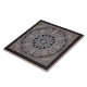 A graphic image featuring a Mandala in carved stone, scrolled shell shaped motifs and criss crossing arches rotating to create an ocular circle medallion. The color scheme is neutral rosy taupe, grey, brown and black, with a dark brown border.