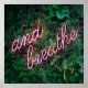 and breathe red neon sign in the leaves. A perfect way to remember to relax and meditate when you are having a rough day.